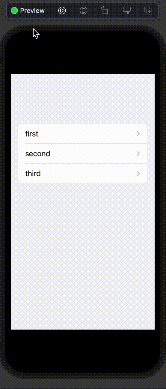 で、一つのnavigationLinkをクリックすると、他のNavigationLinkのisActiveの値も、trueに変わる。そうすると、isActiveがtrueなので、他のNavigationLinkもdestinationを表示しようと頑張って、意図していない(タップしていない)箇所のNavigationLinkが呼び出されると思う。