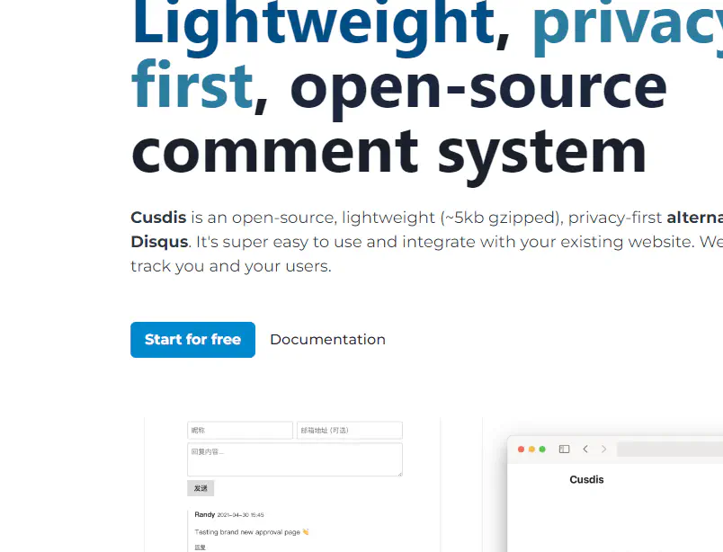 といった感じで、うーむ、どうしたものかとなっていたところで、cusdisというサービスを見つけました。