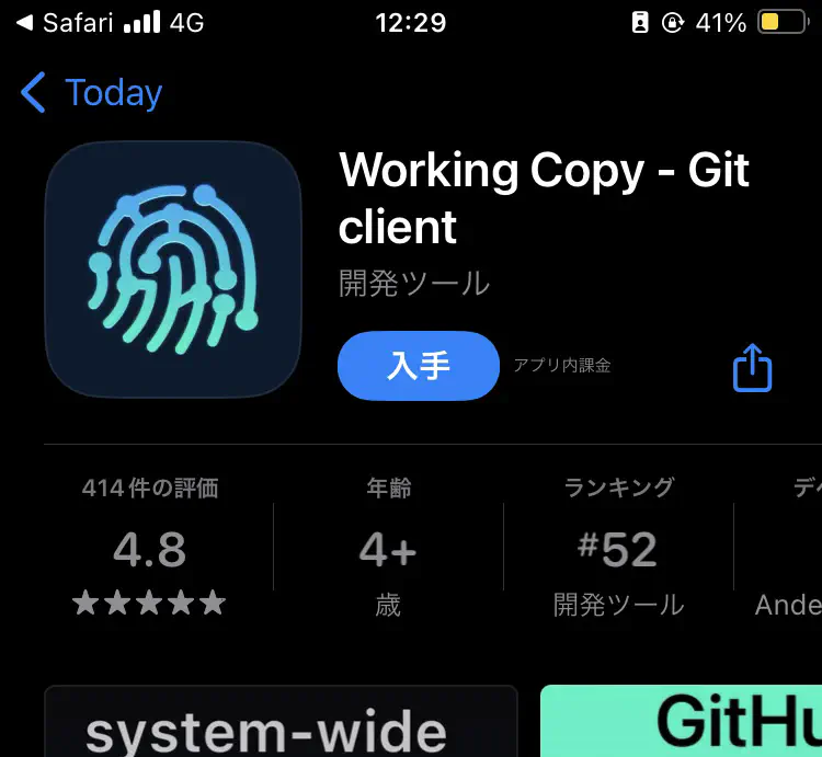 iPhoneでgitを利用するためにWorking Copyというアプリを利用すると良いらしいのでダウンロード、起動します