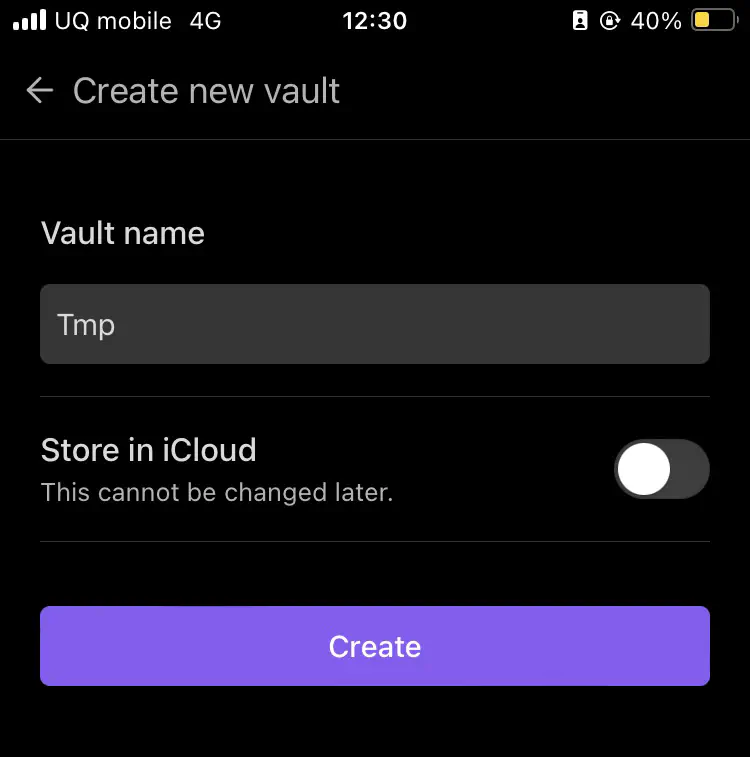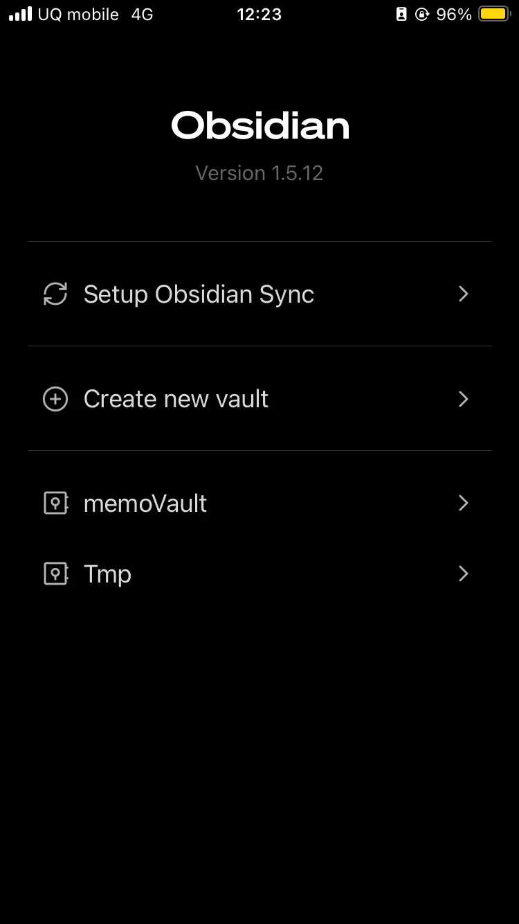 その前に!! もし、あなたがObsidianアプリをiPhoneにインストールしたばかりで、一度も使ったことがないのであれば、一度適当なvaultを作って、iPhoneを再起動したほうがいいかもしれません!
