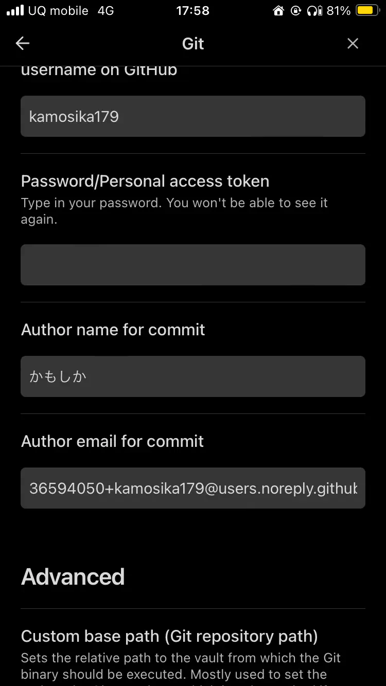 このObsidian-git、スマホで使用するときには、あんまり安定はしていないみたいなのでその辺を理解した上で使うことになります。(実際自分もすでに一度pushできなくなって困りました…自分の操作ミスのせいな気もしますが…) https://github.com/denolehov/obsidian-git