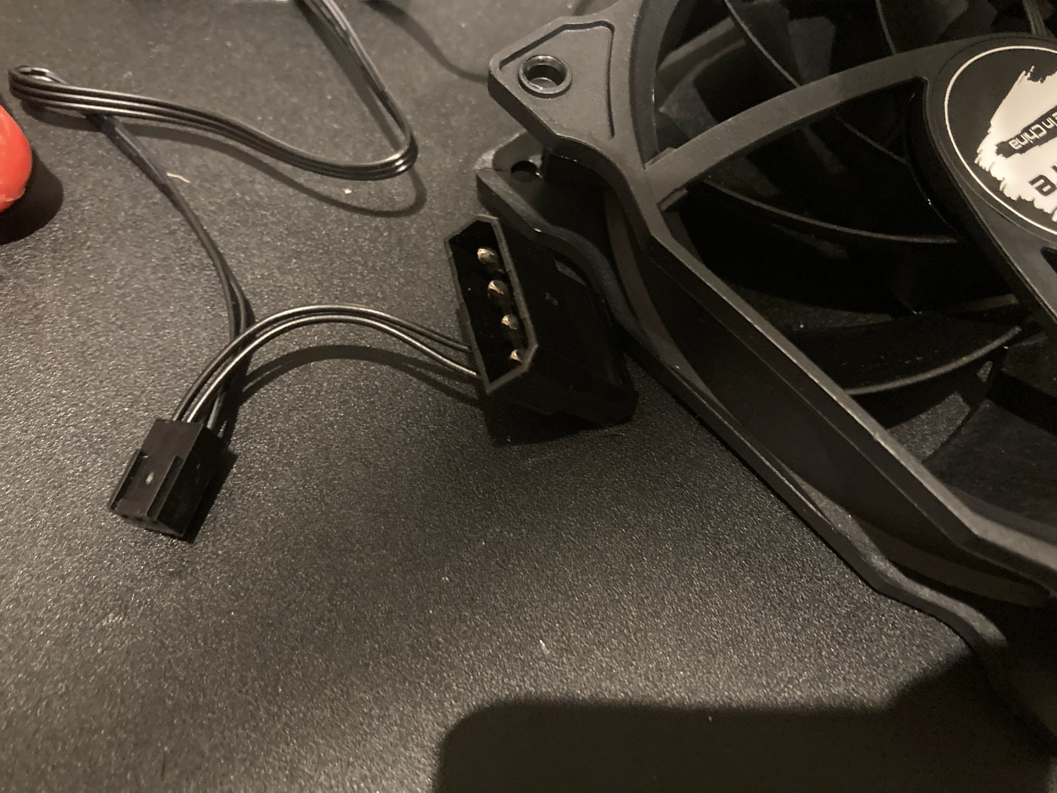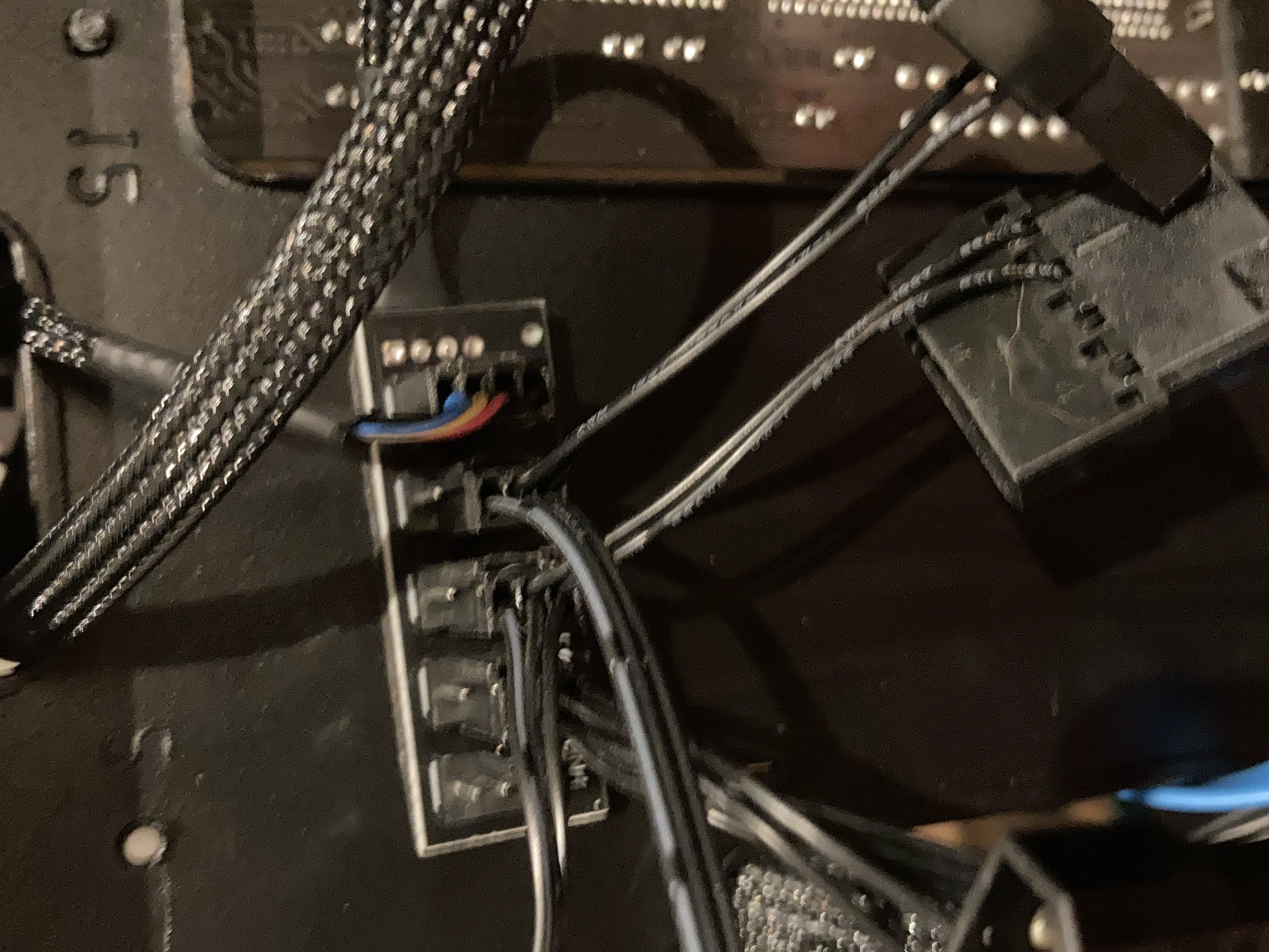 分岐ケーブルを本当はマザーボードのケースファンを差している端子に差そうとしたのですが配線的にめんどくさそうだったので、cpuファンを指していた端子に差しました(いいのか悪いのかわからないです。多分悪い)