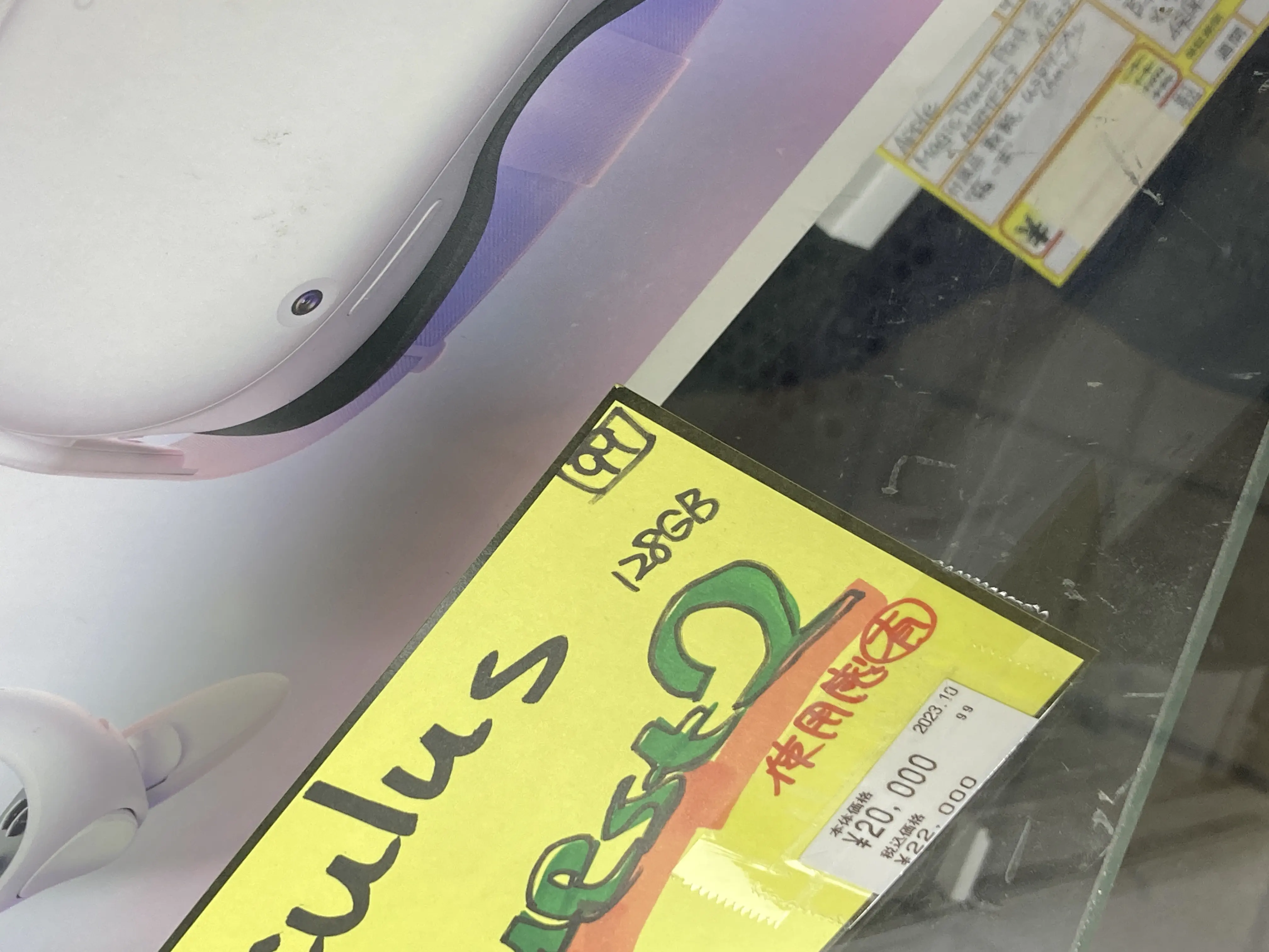 雑談というかなんというか・・・ 本当は中古で買おうと思っていたんです!というのも、前リサイクルショップを眺めていた時にQuest2が中古で大体2万円くらいで売っているように見えたんです!で!それを見て、今やっている作業が終わったご褒美として2万円なら買ってみてもいいかも!!!って思いながら作業をしていたんですよね。で、いざ作業が終わったタイミングでもう一度リサイクルショップを見に行ったら中古で3万円になっていたんですよね!! 多分、以前おいていた2万円のものは売れちゃってしまったんでしょうね。そしてQuest2は新品で約4万円から購入することができます(ブログ執筆時点)。「中古と新品で1万円しか変わらないのか・・・」「でも4万円・・・ちょっと自分のお財布事情的にどうしよう・・・」となっていたのですが、まあある意味作業のモチベーションだったわけですよ!VR購入が!!! それでもう気がくるって新品でQuest2を購入しました。
