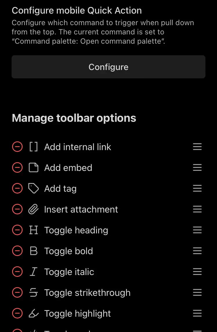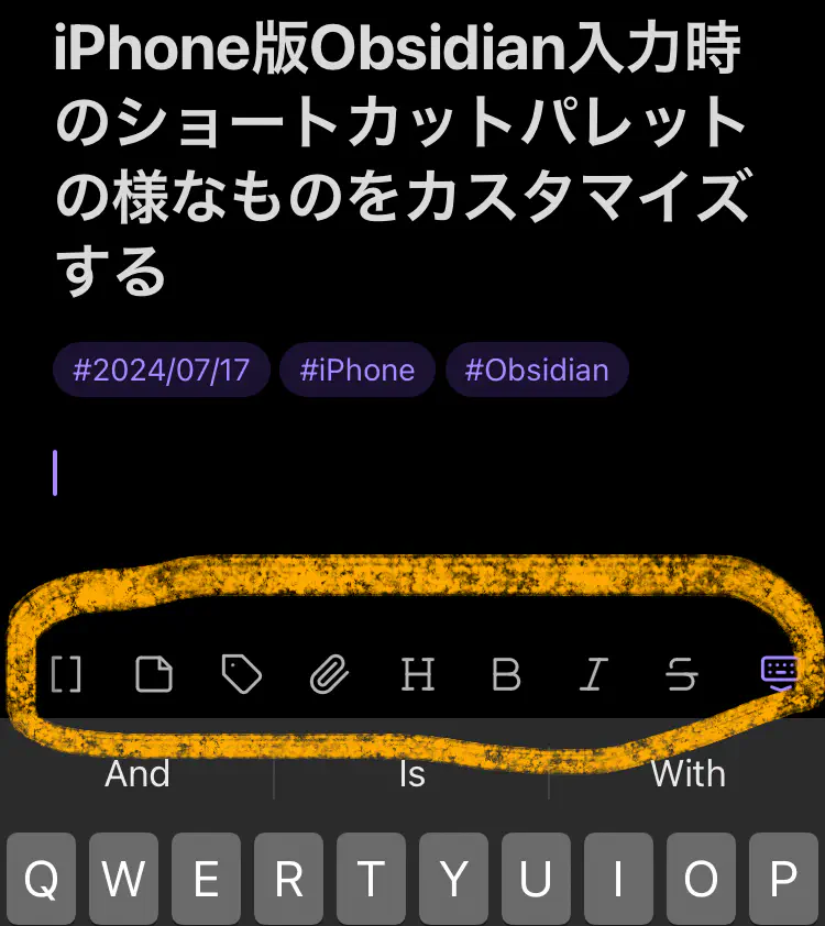 iPhone版Obsidian入力時のショートカットパレットの様なもの(Toolbar)をカスタマイズする