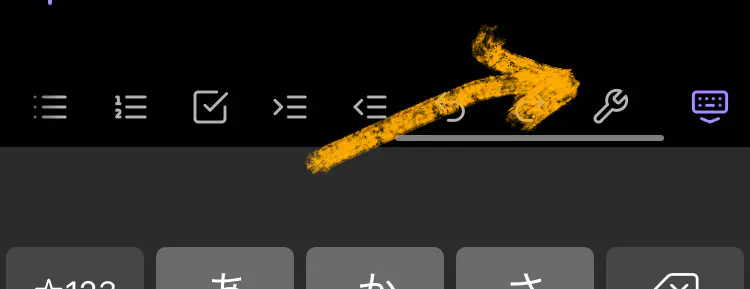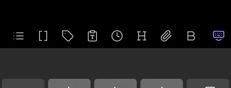 iPhone版Obsidianでテキスト入力すると画像の様なパレットが表示されて(名前わからない)ここに表示されている項目をタップすると色々できる