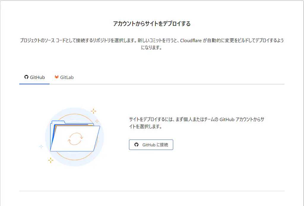 gitに接続するを押す(っていうかファイルを直接アップすることもできるんだ・・・)