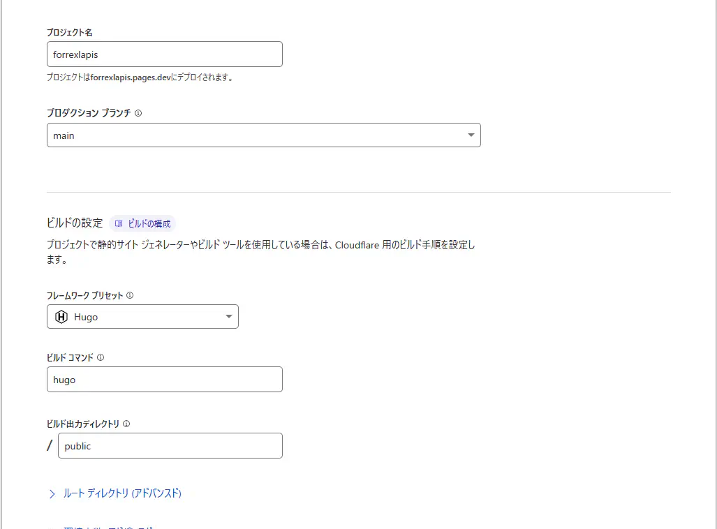 ブランチとかフレームワークプリセットを選択してあげるよ!自分の場合はHugoだね!