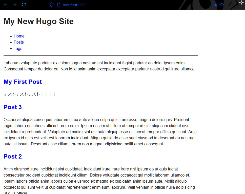 hugo serverとすると記事の変換とかしてくれた後に、Webサーバーを起動してくれる