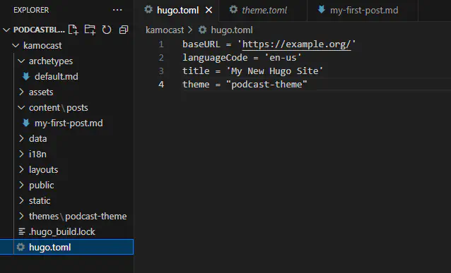 するとtheme/podcast-themeみたいなディレクトリが作られて、そこにテーマのひな型みたいなものが入っている