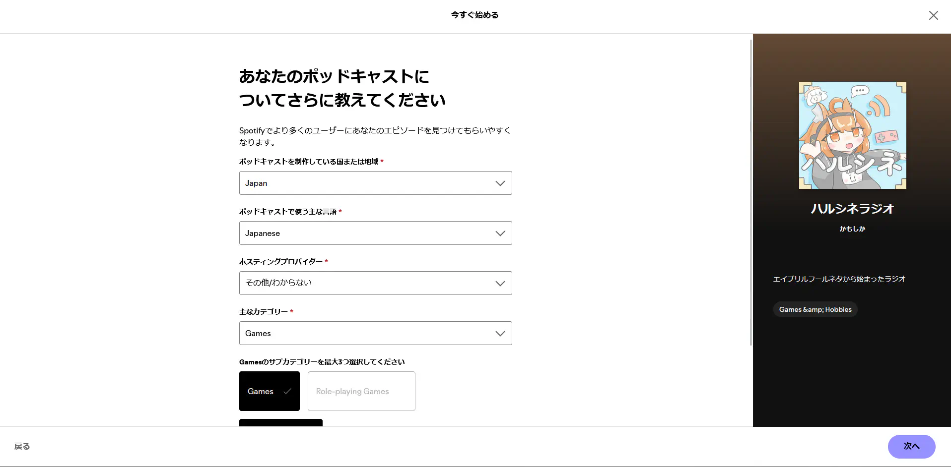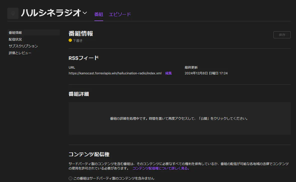 ポッドキャストの追加?みたいなもののしたけど、ずっと「下書き」状態から変わらない……