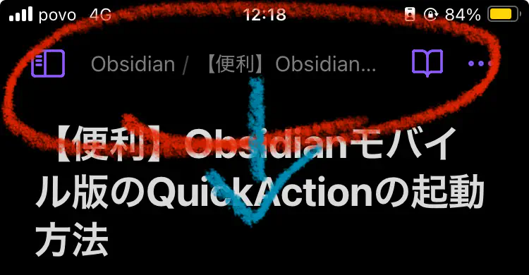 【便利かも!】Obsidianモバイル版のQuickActionの起動方法